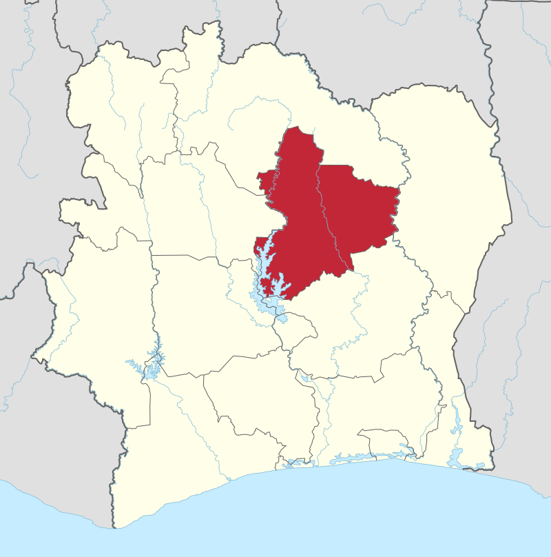 Ce district est situé au centre du pays, entre les districts du Woroba à l’ouest, des Savanes au nord, du Zanzan à l’est, des Lacs au sud et du Sassandra-Marahoué au sud-ouest.